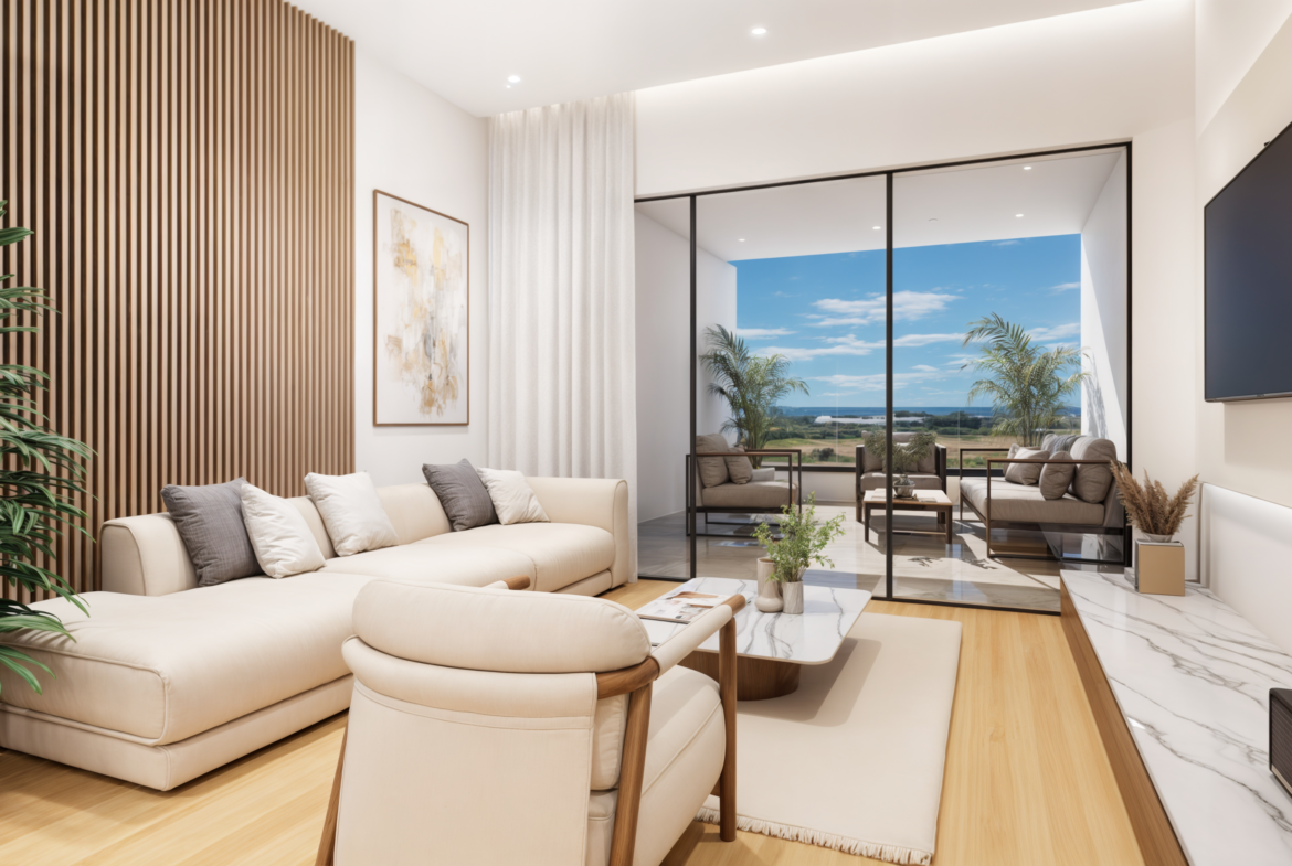 Positioned to capture breathtaking views of the surrounding natural landscape, the apartments feature spacious layouts enhanced by abundant natural light, creating a warm and inviting atmosphere throughout.