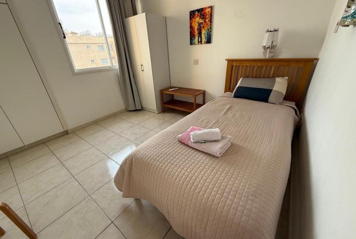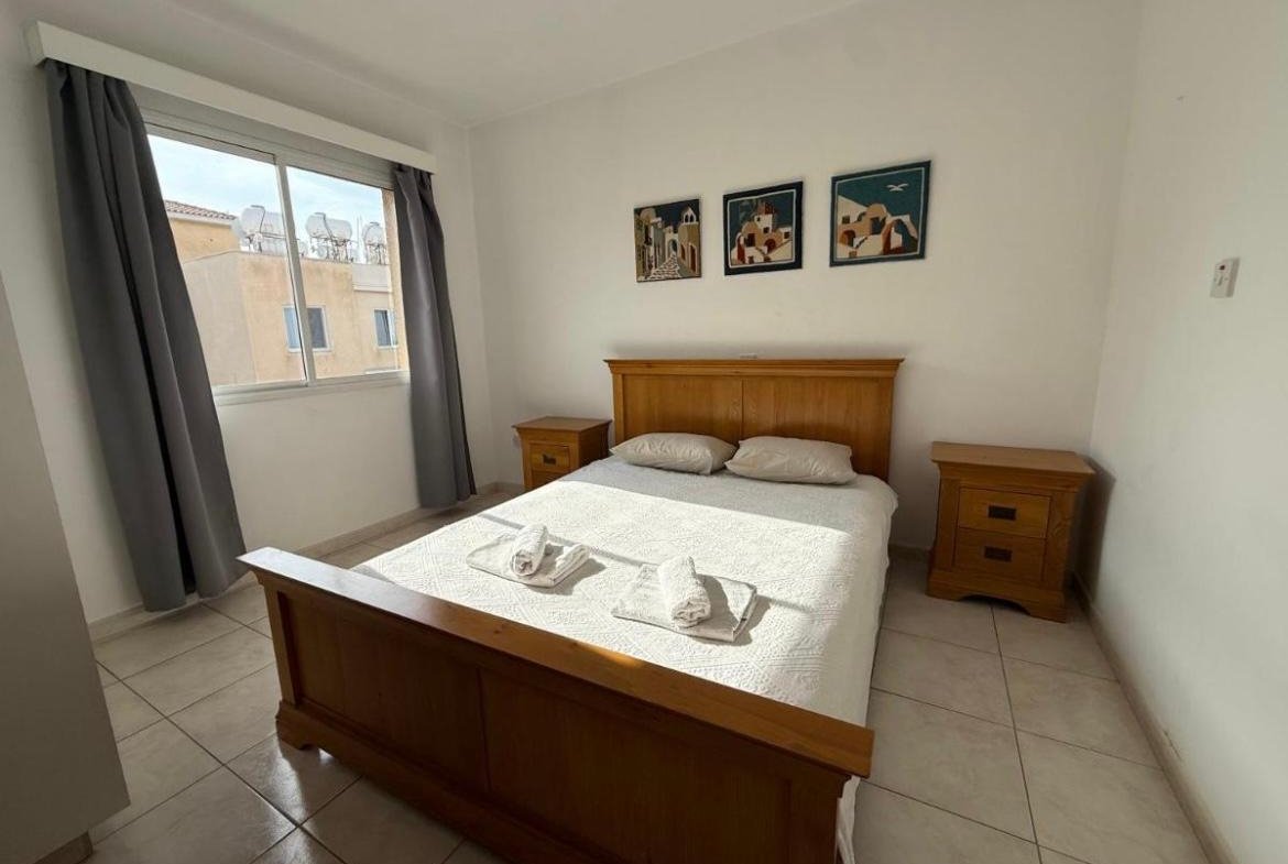 This well-presented two-bedroom, one-bathroom apartment is ideally located in a central area of Paphos, just a short distance from Paphos Mall and within walking distance to shops, bars, local taverns, and restaurants.